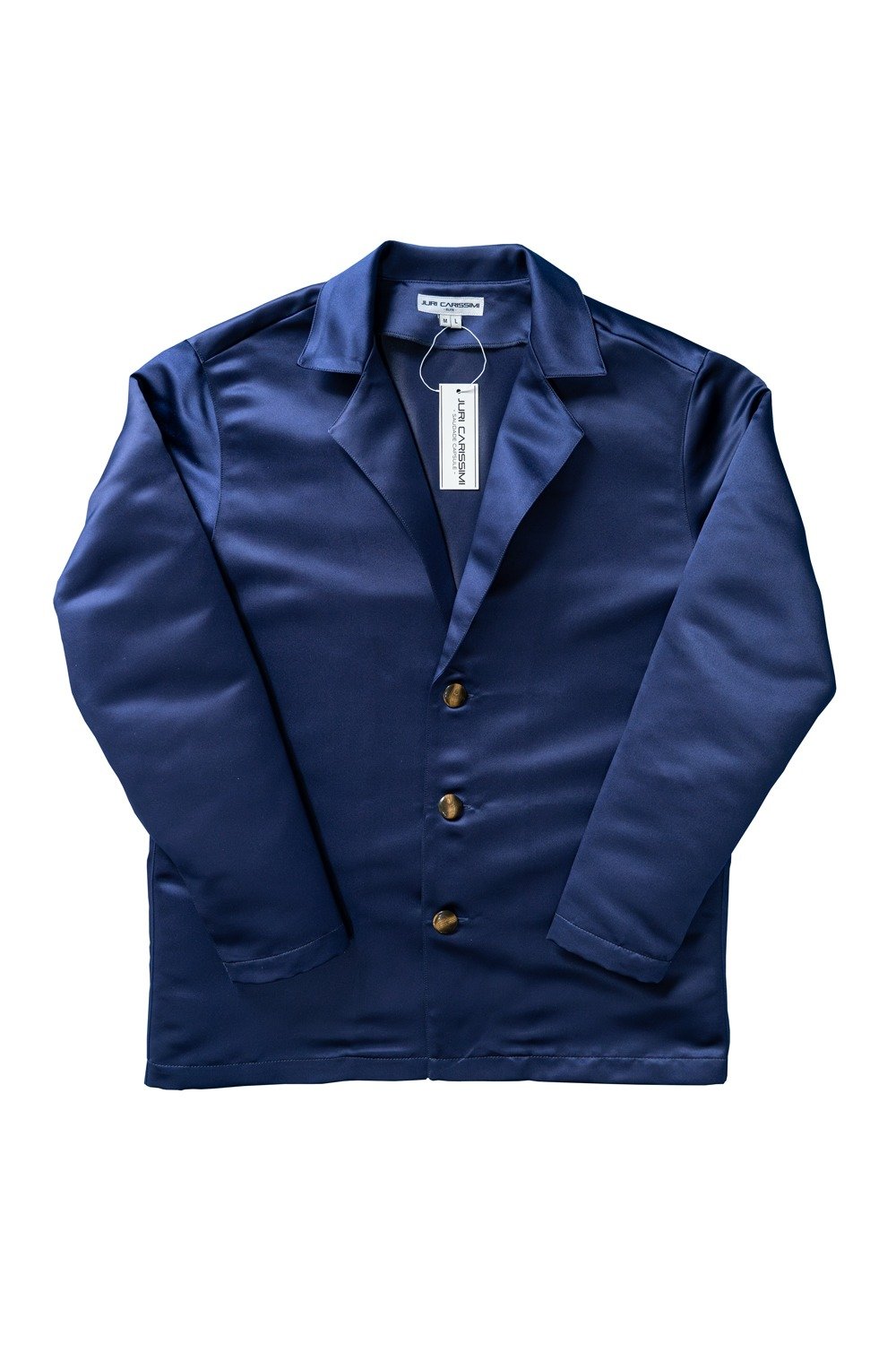 Questo abito sartoriale in raso blu con rever classico e manica lunga rappresenta il perfetto equilibrio tra raffinatezza e comfort. Il tessuto in raso, con la sua finitura lucida, crea giochi di luce e ombre che rendono il capo unico e visivamente accattivante. Pensato per chi desidera distinguersi con stile, è ideale per serate eleganti o eventi speciali.