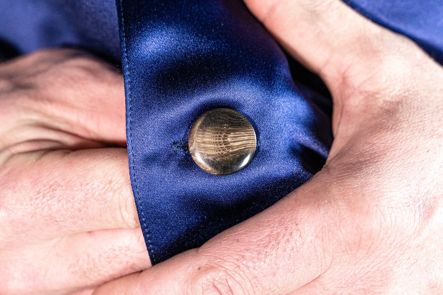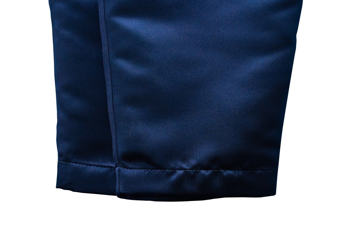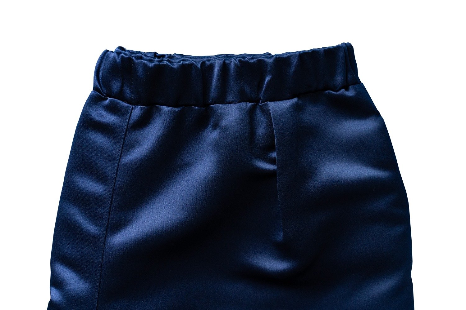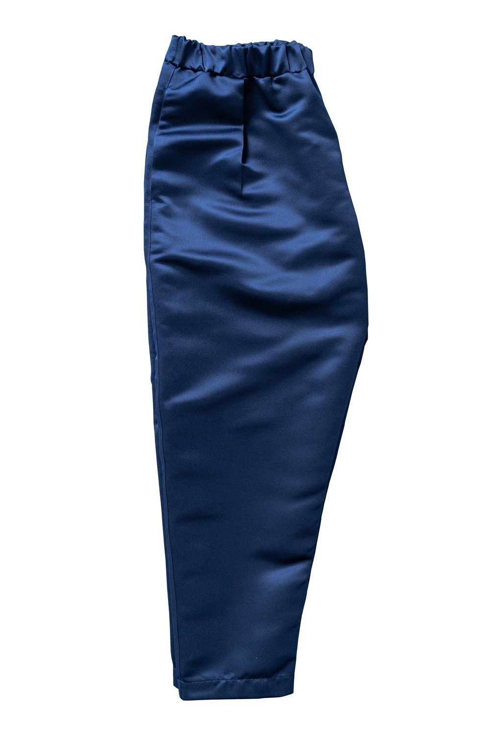 L’abito in raso blu si presta a molteplici interpretazioni: abbinato a scarpe lucide e accessori minimal per un outfit formale, oppure a mocassini per un look più rilassato ma sempre ricercato. Il contrasto tra la texture brillante del raso e il taglio sartoriale tradizionale dona al capo una versatilità unica.