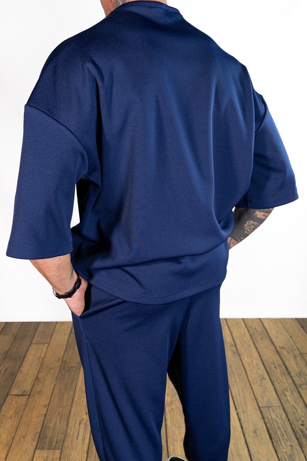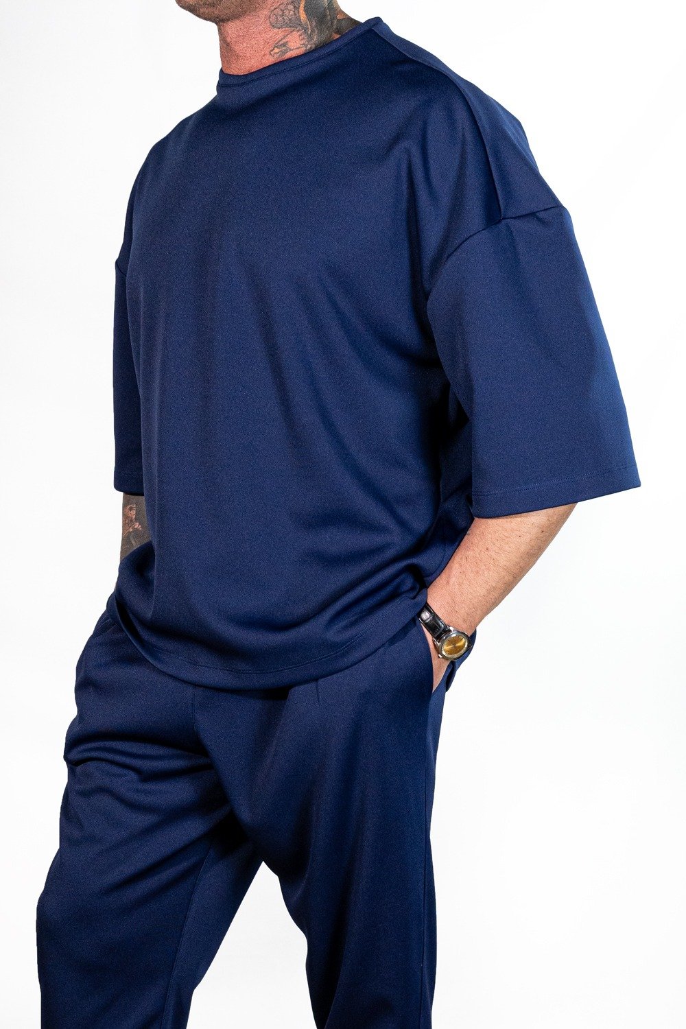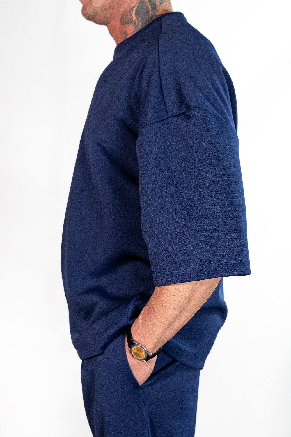 Questa t-shirt oversize in cotone premium blu scuro incarna la combinazione perfetta tra semplicità e raffinatezza. Realizzata al 100% in Italia, unisce un design essenziale a materiali di altissima qualità, offrendo una vestibilità eccellente e un look contemporaneo.
